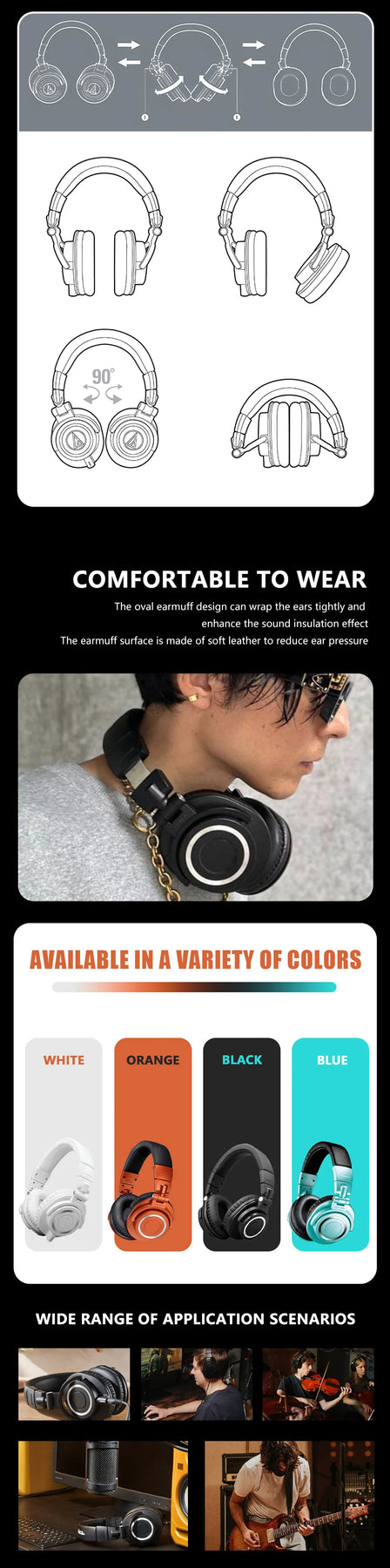Package List: Carrying Bag,3.5mm Jack Adapter,Detachable Audio Cable,6.3mm Jack Adapter