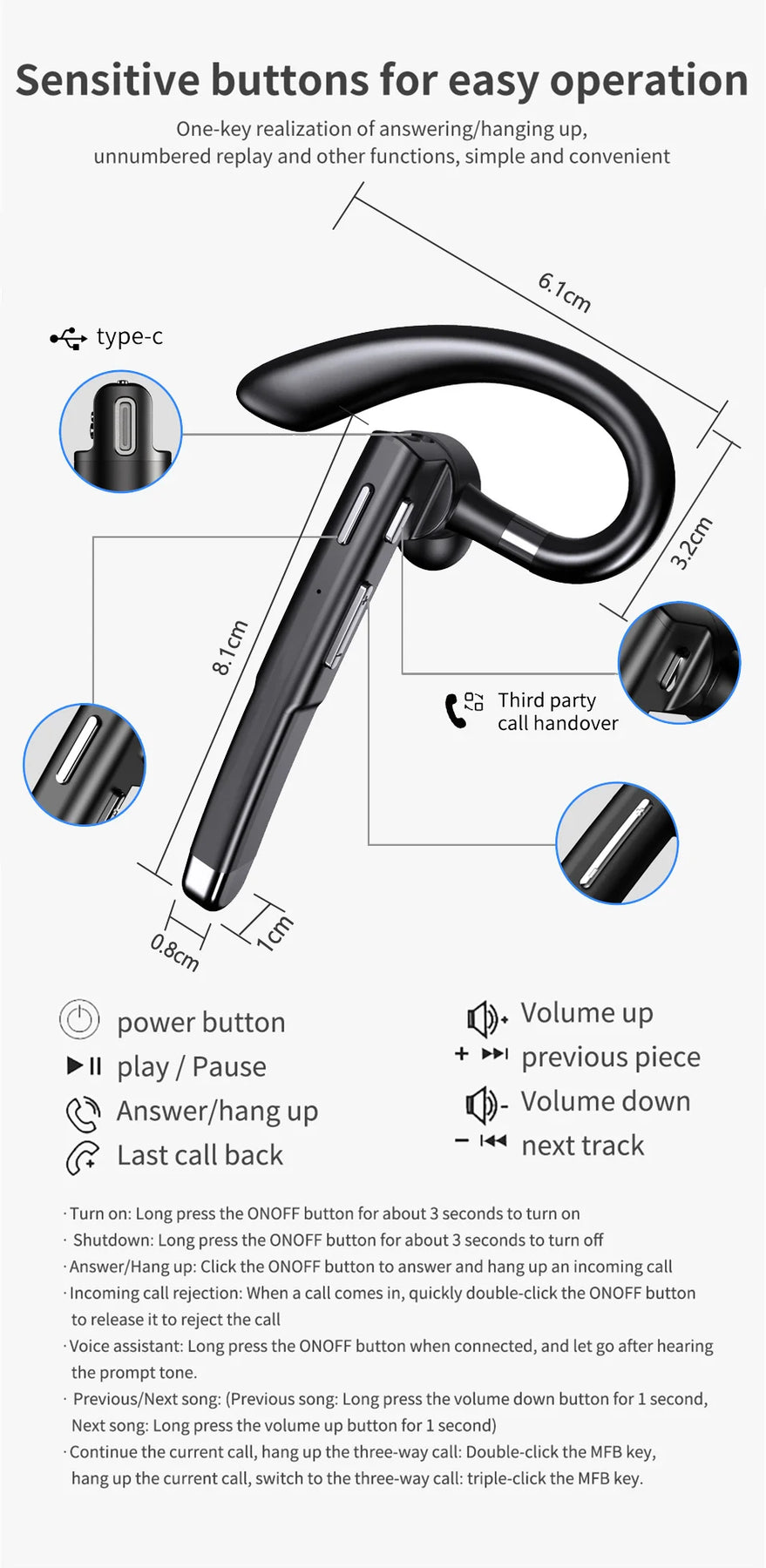 1: The headphone volume button is a multifunctional button. To adjust the volume, you need to click the button, while to play the up/down track, you need to long press the button for about 1 second.