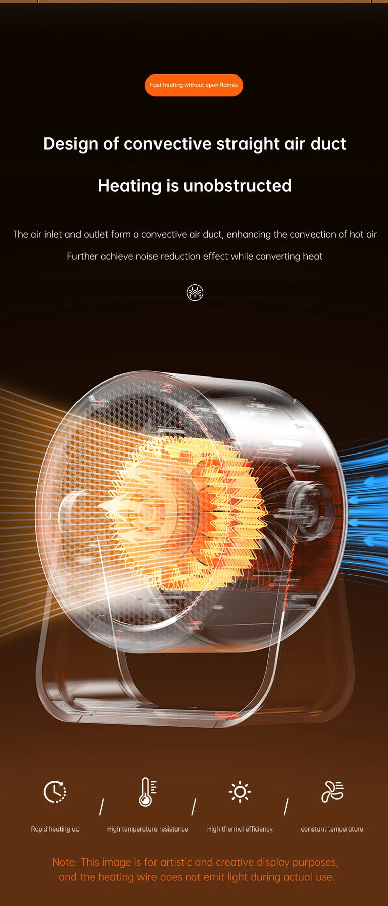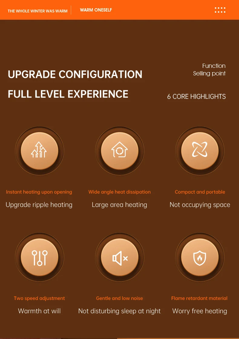 Safety is prioritized with multiple protective features: an overheat protection system that shuts the unit off if it reaches unsafe temperatures, and High-temperature-resistant metal fence, flame-retardant material body, reducing the risk of accidental misuse. More than just a heating device, this portable heater makes for a thoughtful gift, bringing practical warmth to friends and family during cold weather . Whether you’re battling a drafty office, a chilly bedroom, or a cool dorm room, it delivers reliable, customizable warmth wherever you need it.